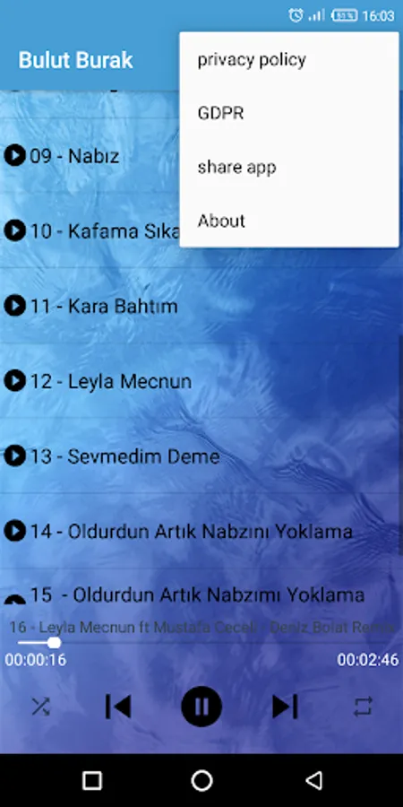 • Automatic stop when a call is received and continue listening as soon as the call ends