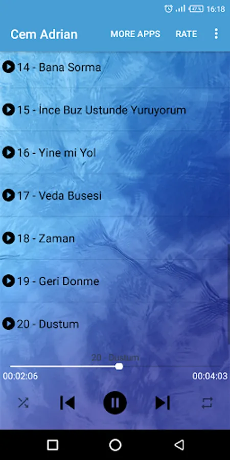 Applications to listen to songs offline. The latest collection of Jim Adrian songs. It can let you listen to the music you want anywhere, anytime and without restrictions. Listen to the best mix of contemporary music.