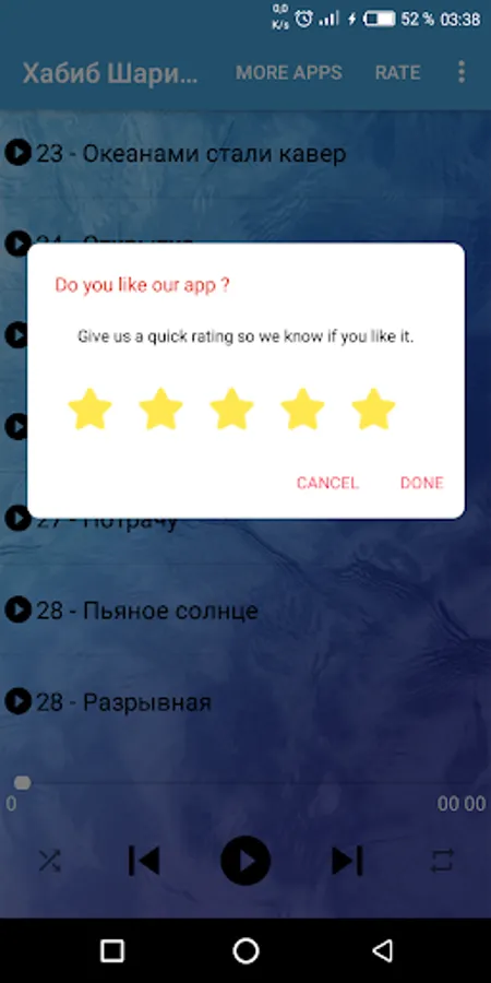 In this application, it is a wonderful chanson of Khabib Sharipov that can be used for hours without using internet functionality - you can use it without planning donations - and there are 20 wonderful music that can be used as alarms, alarms, etc. The suite - easy to use - design futuriste - the quality of the music is déjà élevée and is very acceptable to the original - in a separate application, it has many functions (all in one)