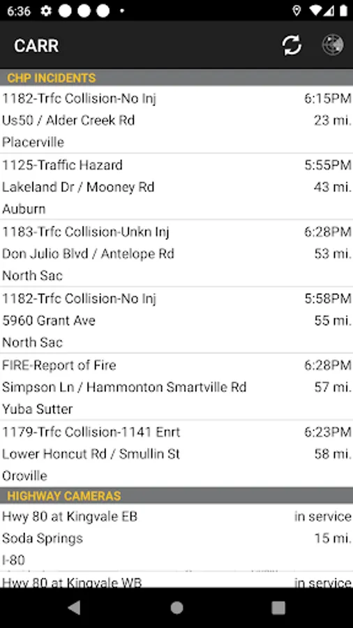 With California Road Report you can view CHP incidents, chain control, rest stops, highway cameras, and CalTrans road conditions in the state of California on your on your Android powered device.