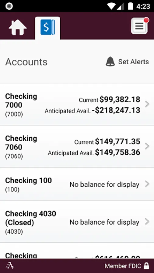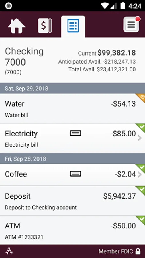 Check business account balances, view recent transactions (including check images), transfer money between accounts, and make deposits. Authorized users can approve wire and ACH transactions and review and approve positive pay exceptions.