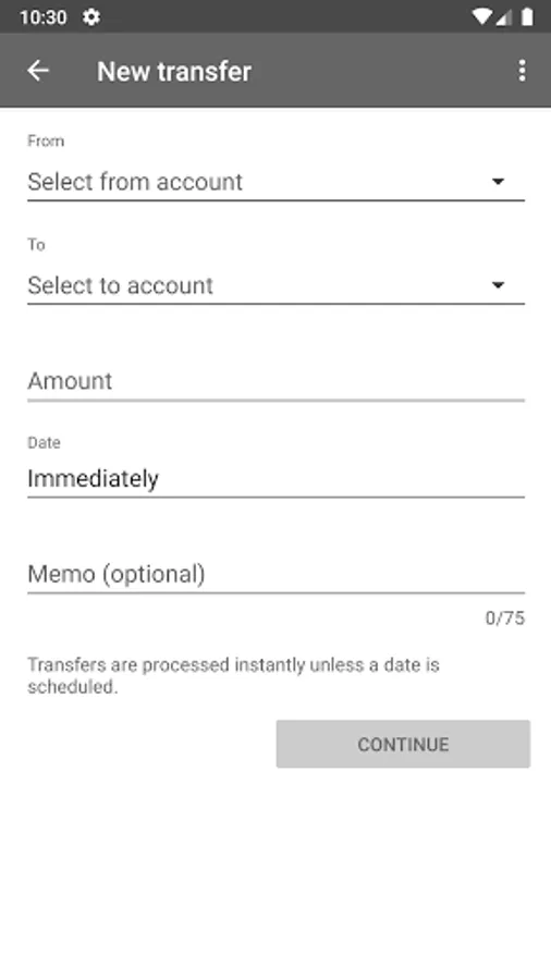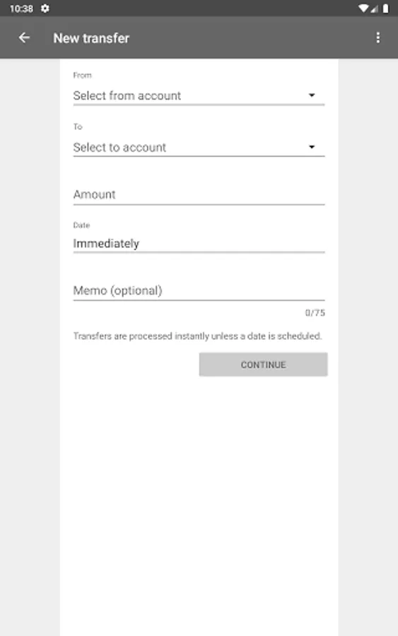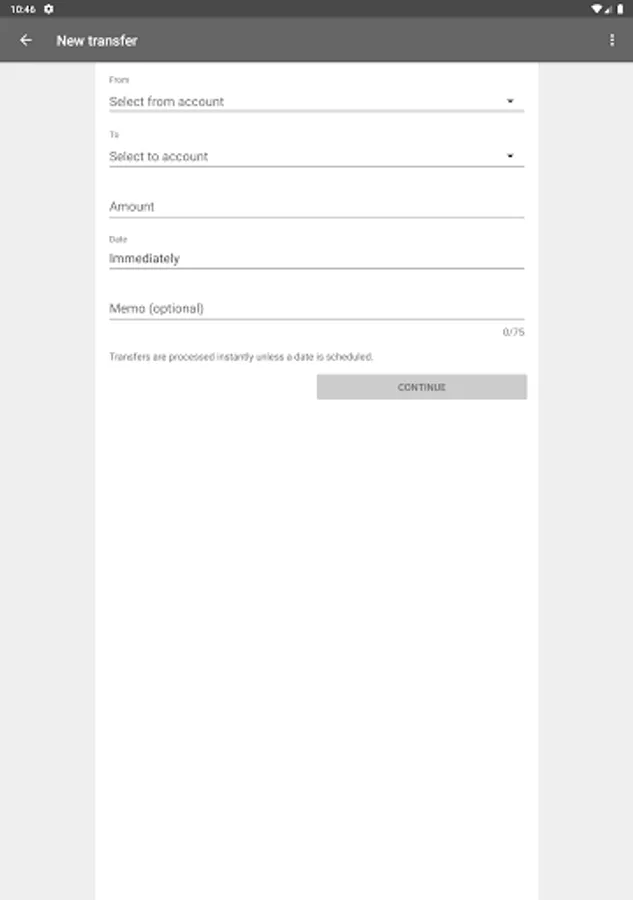 to send money to an existing payee or to establish a new one. The app will ask permission to access your contact list which is only used as a convenience for completing payment fields. If you agree, selected contacts will be stored for your convenience for future transactions, otherwise, no contact information will be stored.