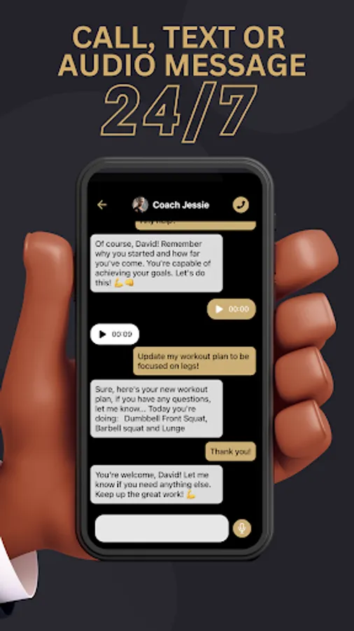 📱 Coach Texting: Connect with our intelligent AI coaches through in-app messaging. Have interactive conversations, ask questions, and receive personalized guidance tailored to your fitness goals. Our AI coach is here to support you every step of the way, providing expert advice and motivation.