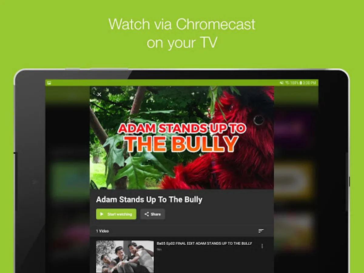 Don’t want children watching content on tiny screens? One tap lets you stream videos directly onto your TV using a Chromecast device!