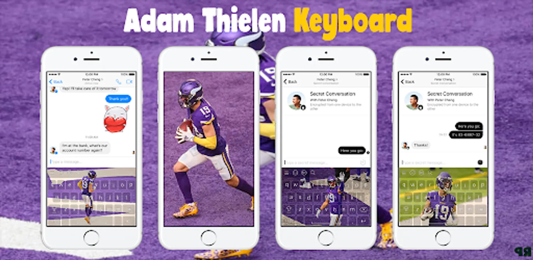This app is made By : Adam Thielen Keyboard Minnesota Theme 2021 For Fans and it is unofficial. The content in this app is not affiliated with, endorsed, sponsored, or specifically approved by any company. All copyright and trademarks are owned by their respective owners. The images in this application are collected from around the web, if we are in breach of copyright, please let us know and it will be removed as soon as possible.