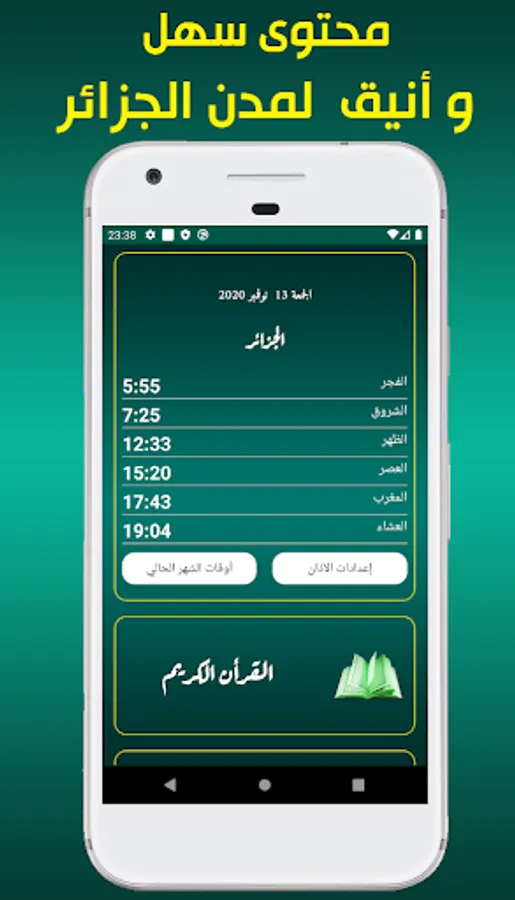 Algeria Azan, a new application for prayer times in addition to the Holy Quran and Azkar.