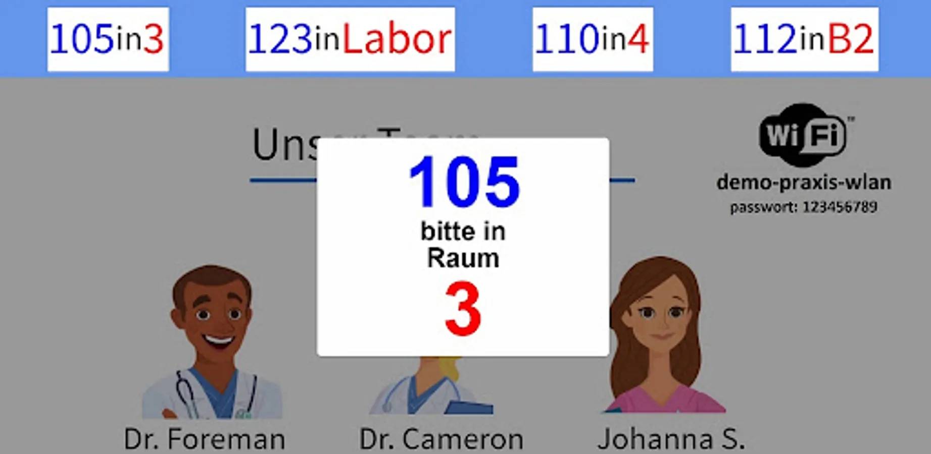 • Individual treatment process -> your patients can automatically go through several rooms or departments in a fixed order