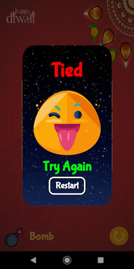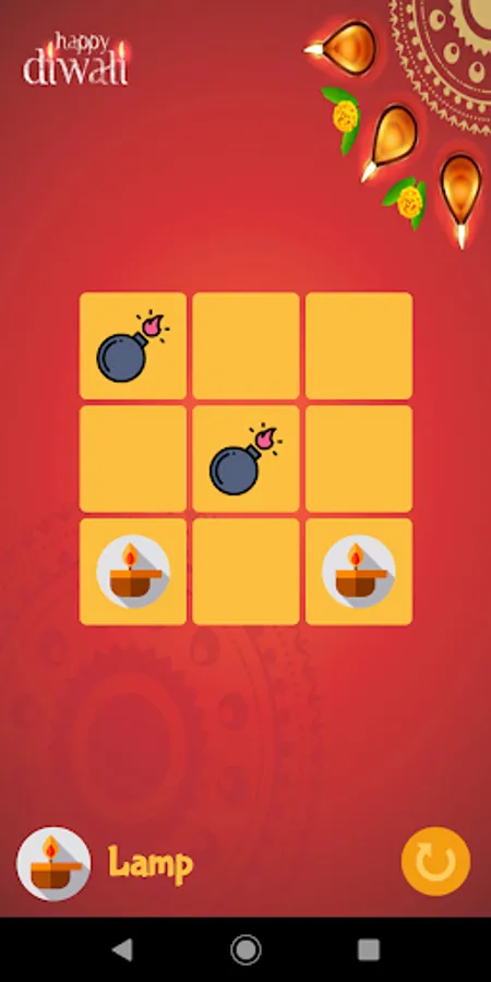 This game is the diwali version of Tic Tac Toe where we are using lamp and bomb instead of zero and cross.