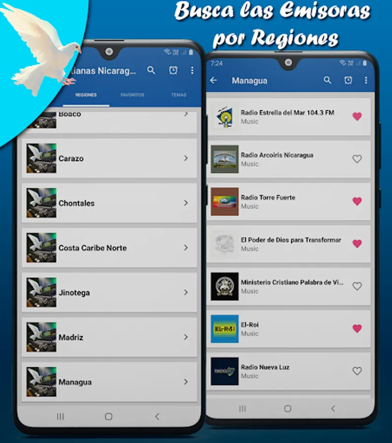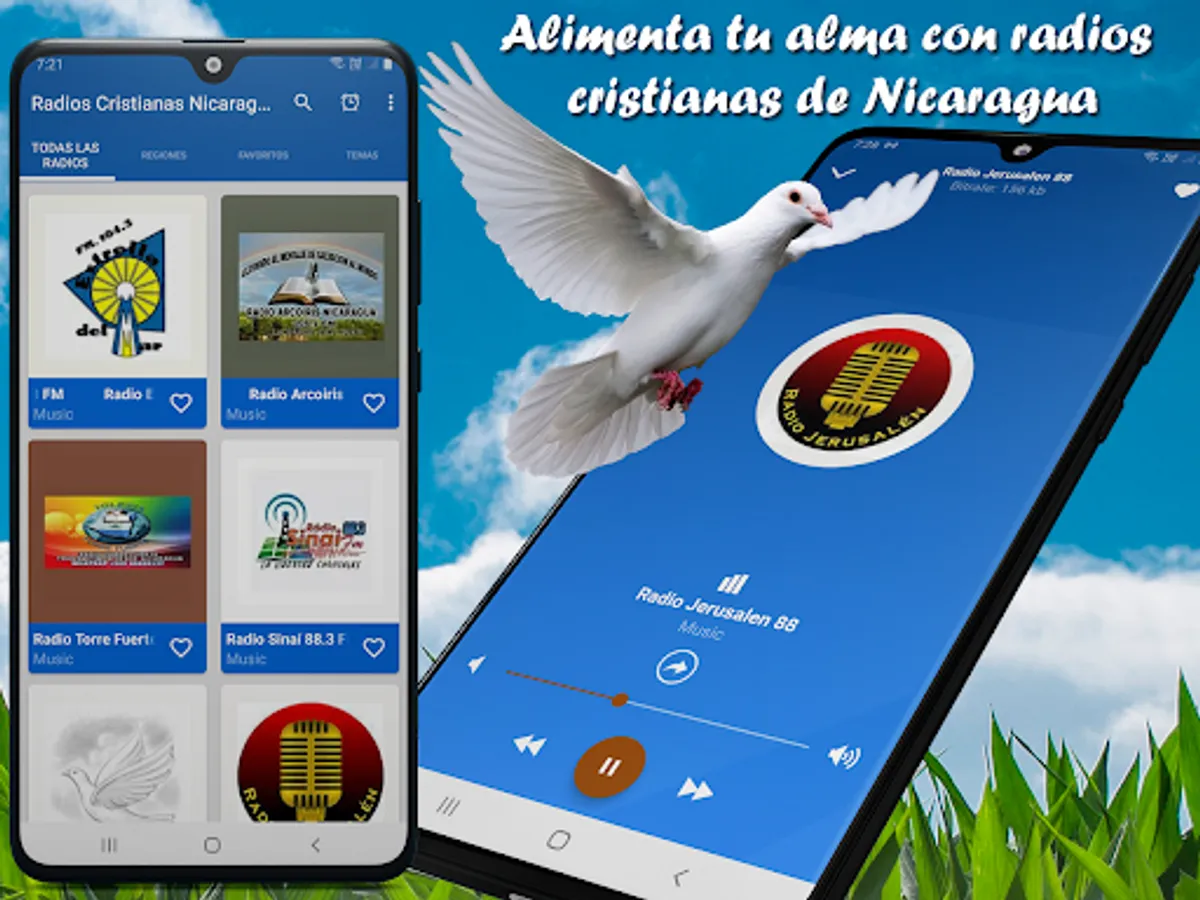 The new Evangelical Radios of Nicaragua allows you to connect to more than 20 Nicaraguan Christian stations and live radios, am radio, FM radio, online, state and local radio. Now you can listen to your stations wherever you are, just by moving a ☝ finger.
