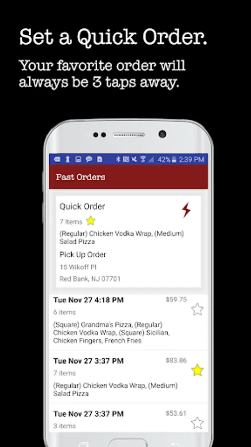 QUICK ORDER - Choose a past order to set as a quick order for the fastest way to order your favorite meal.