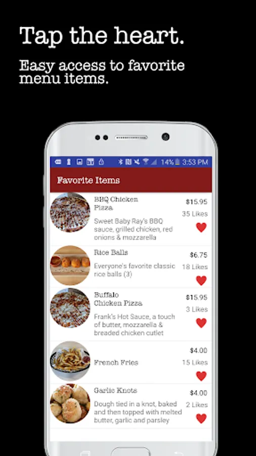 SAVE FAVORITES - Easily favorite menu items to quickly access your favorites.