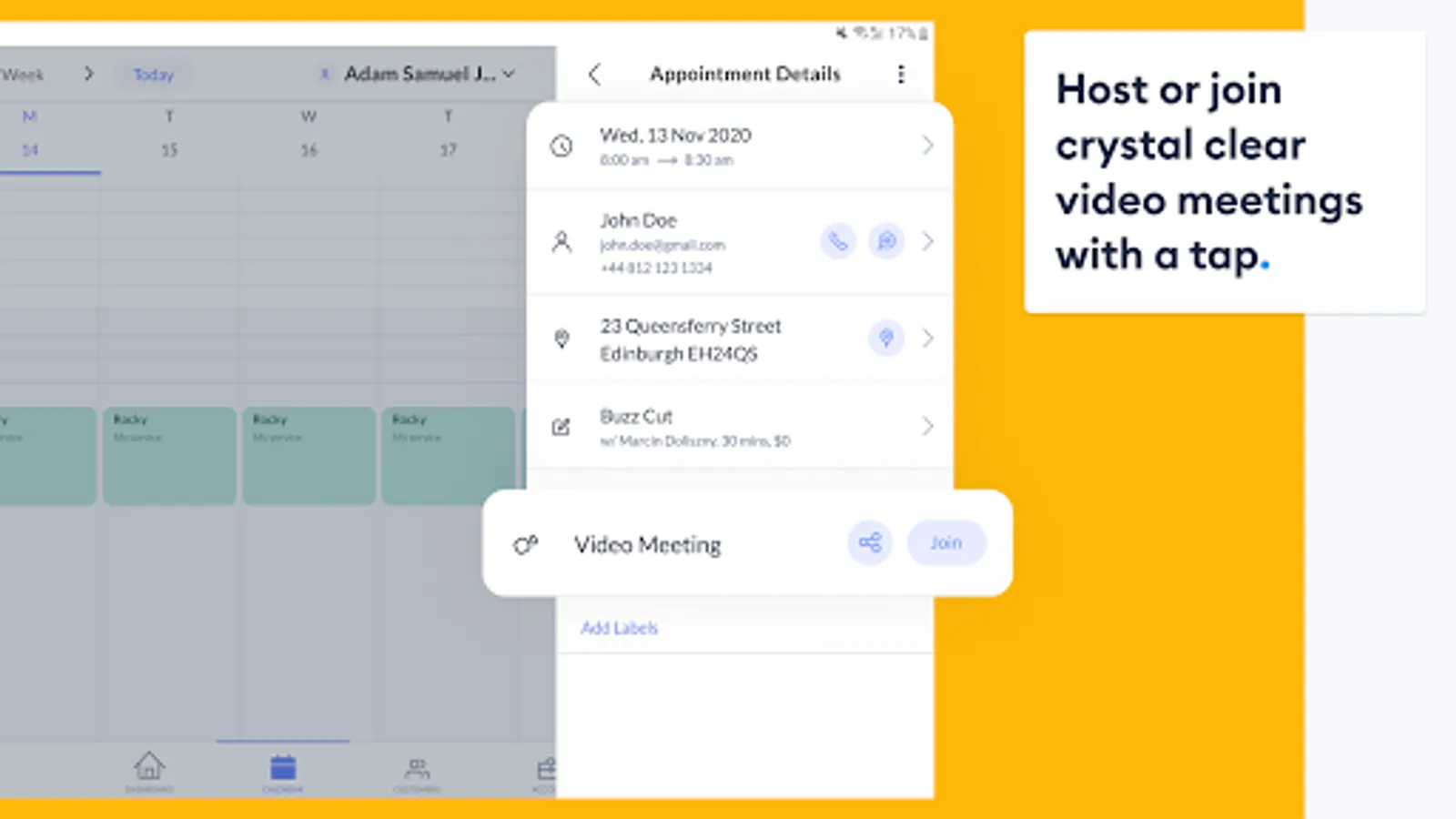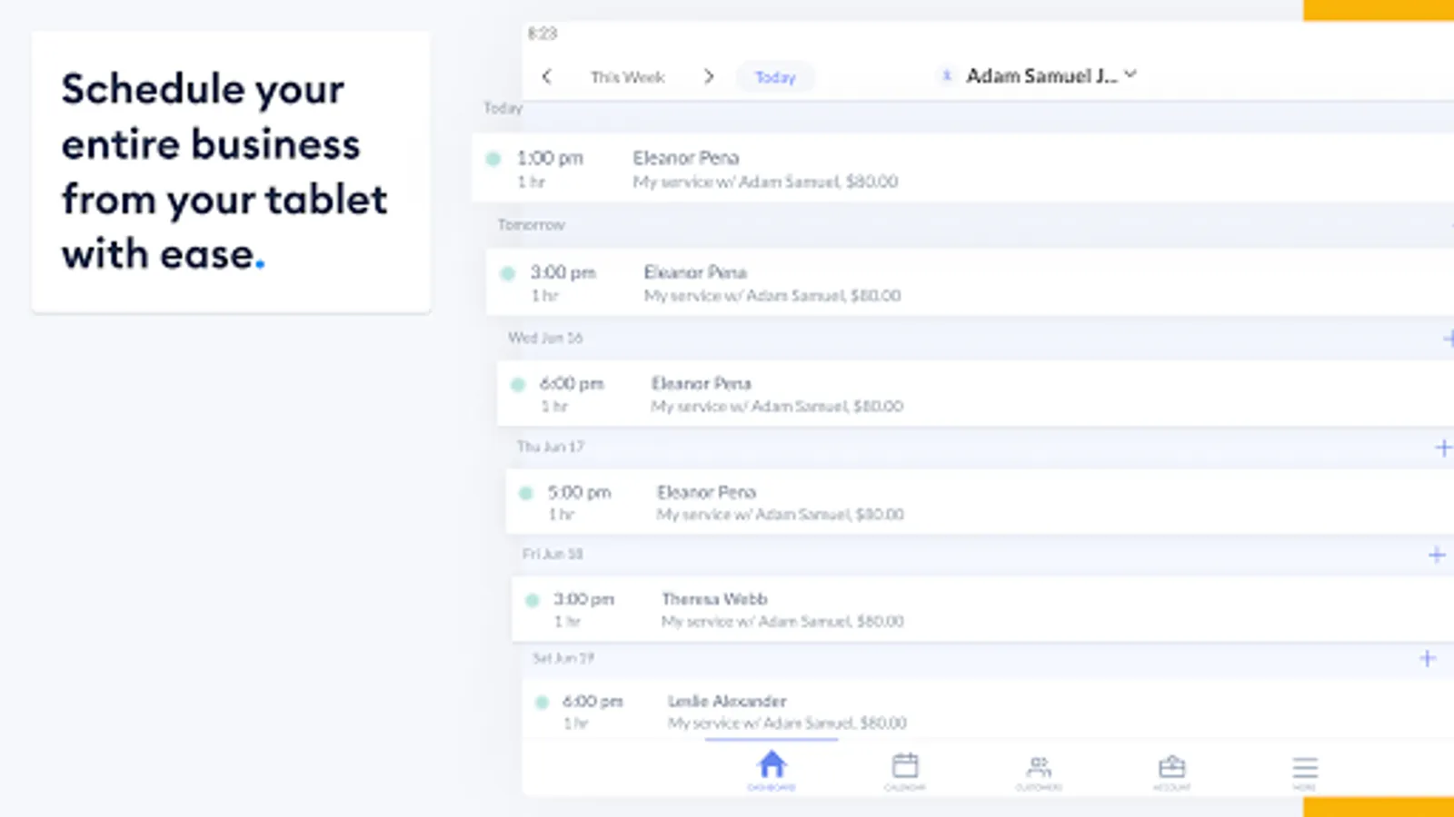 Get a real-time view of your schedule at any time, and add or edit appointments in just a few taps. You can also share your unique booking link in DMs, emails, chats, social posts and more, enabling customers to view your availability online and pick their ideal slot.