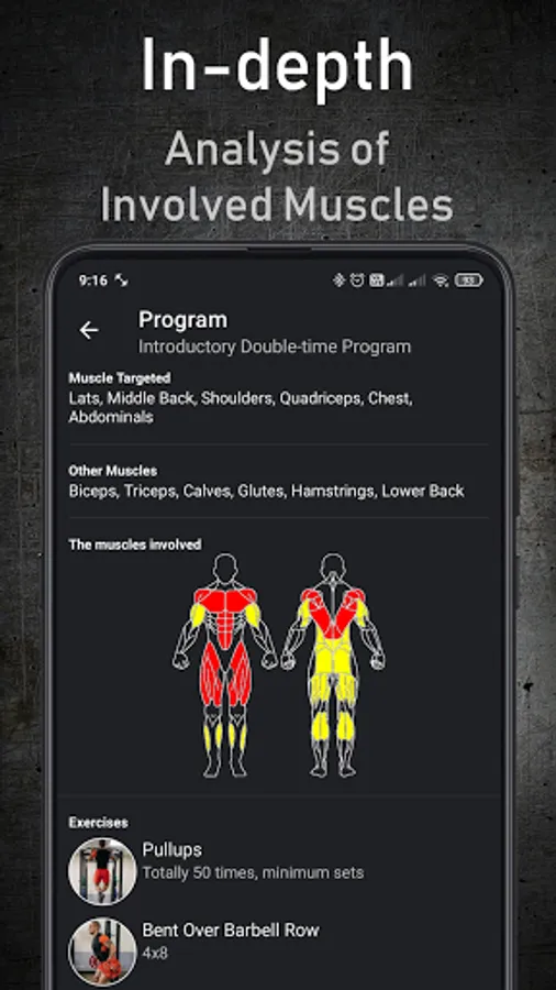 Analyze the training programs, the days of programs, training and exercises for the muscles involved, thanks to their dynamic drawing on the body diagram.