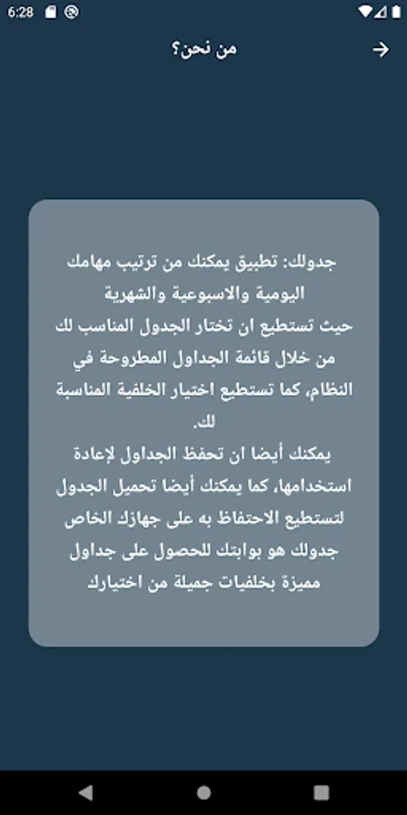 It is an application that helps you arrange your daily, weekly and monthly tasks, where you can choose the appropriate schedule for you through the list of schedules presented in the system