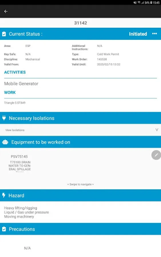 IntelliPERMIT Mobile Modern is a comprehensive permit to work solution that ensures that plant hazards are accurately identified and that the specific requirements for safe work are clearly communicated. All permit signatories (including contractors) are biometrically identified using fingerprint scanners to ensure that they are trained, competent and authorised for the role they are expected to perform. Isolation procedures are managed in the system – this saves time when generating permits and reduces the scope for errors during shutdowns. The software includes functionality to manage key safes and multiple associated permits typical in large shutdown scenarios.  Mobile IntelliPERMIT Mobile Modern allows the users to remotely sign and view their permits. This is a companion application to OpSUITE.