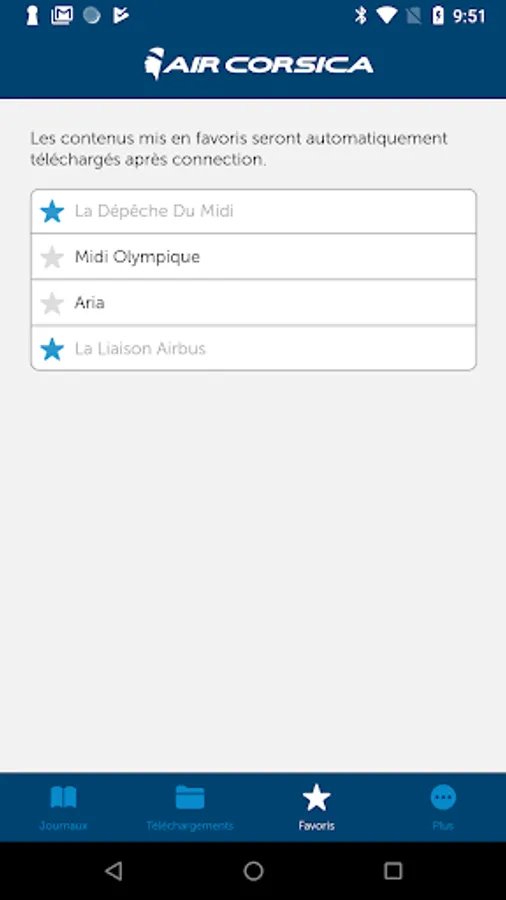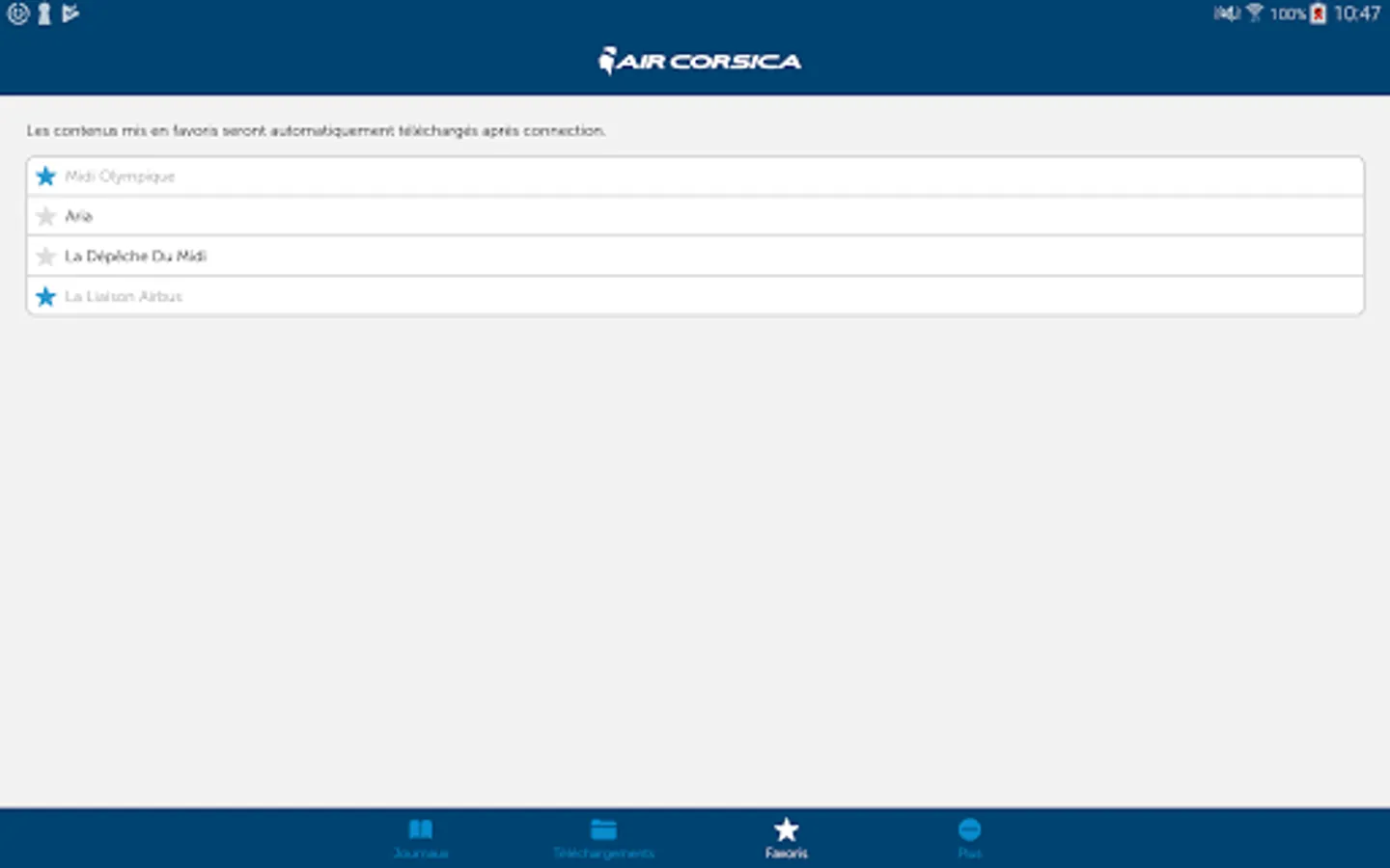 With the application Kiosk Liaison Air Corsica, enjoy a moment of leisure. Before your flight, download for free on your mobile, newspapers and magazines.