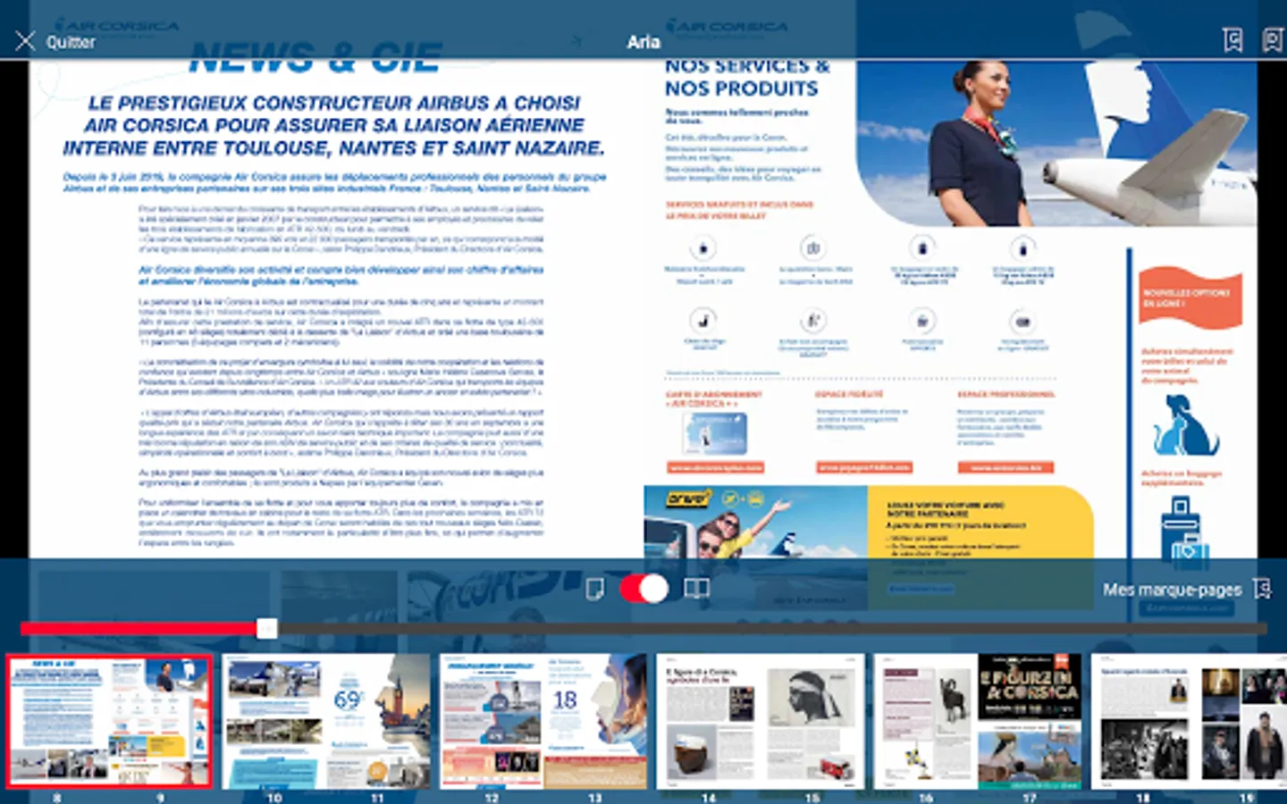 Choose in a few clicks your French press titles, your favorite magazines and consult them throughout your trip with or without internet connection, thanks to the Kiosk application of Air Corsica.