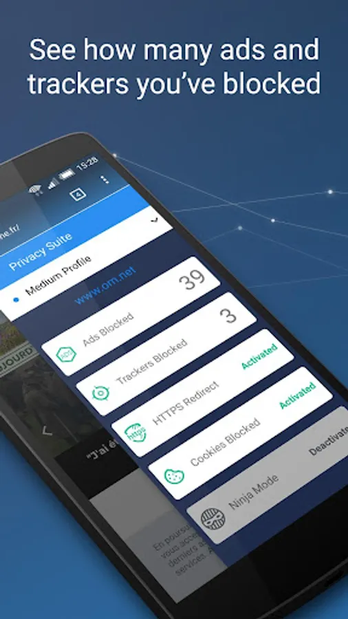 Protect your privacy with a set of tools called the Privacy Suite. These tools help you control who has access to your data online. Choose from three privacy levels: High, Medium and Low.