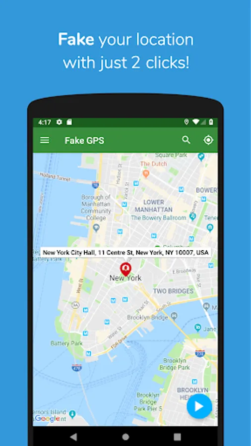 This app sets up fake GPS location so every other app in your phone believes that you are actually there!