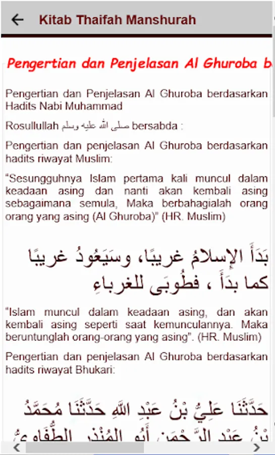 The Book of Thaifah Mansurah, among its contents, discusses Al-Ghuraba'