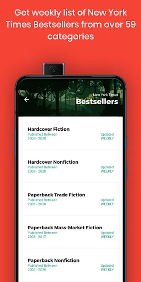 Get weekly updated lists of NEW YORK TIMES bestsellers from over 59 categories..