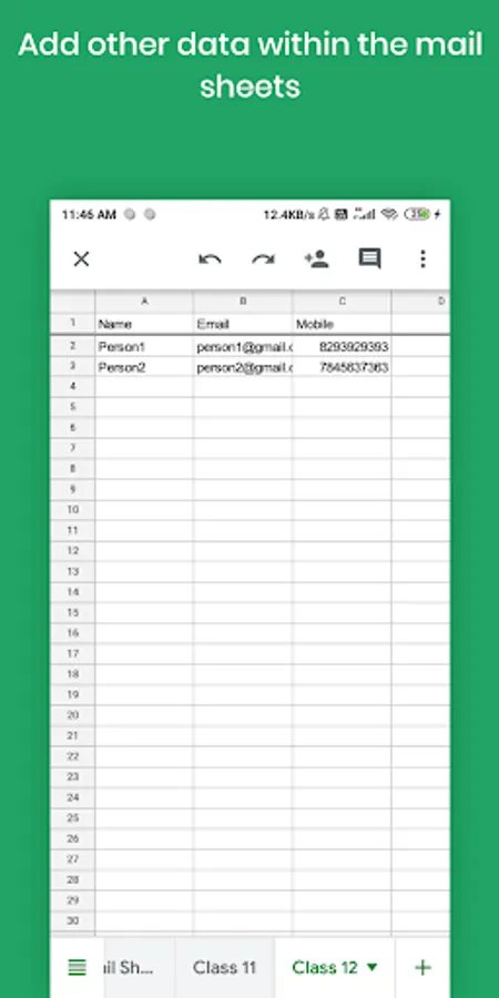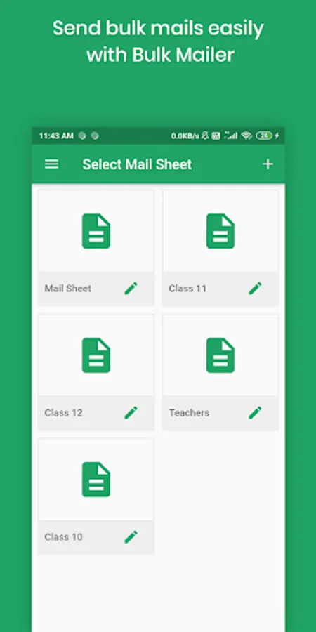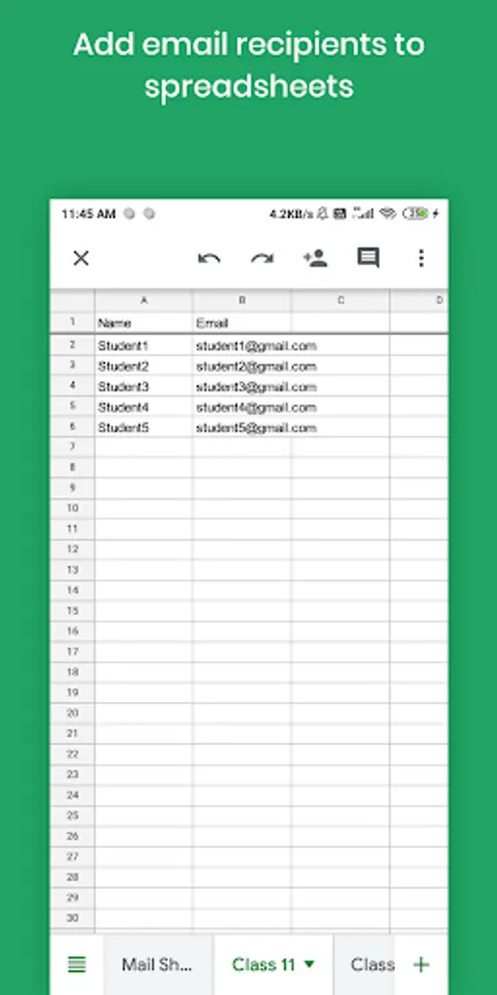 Create mail sheets with email addresses or copy your email addresses data from other spreadsheets to one of the mail sheets and send bulk mails easily.