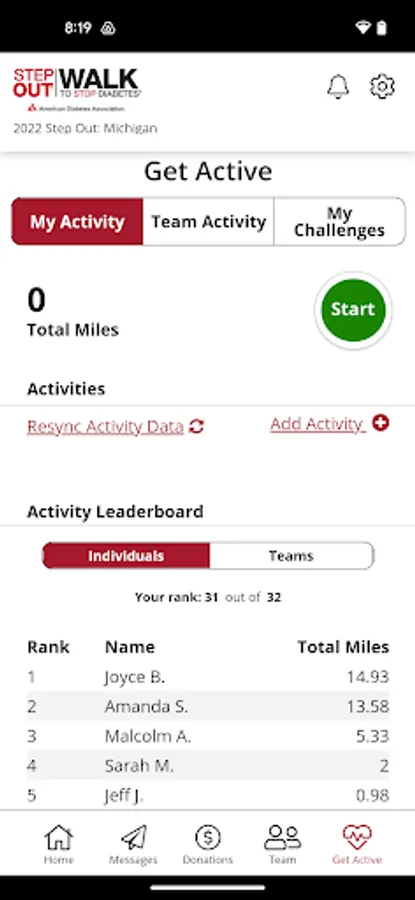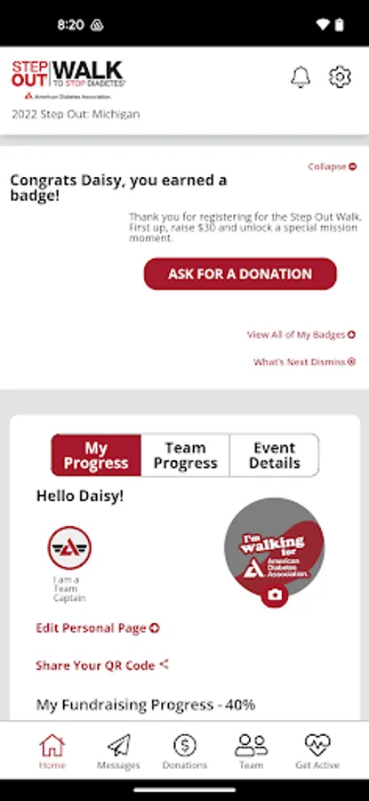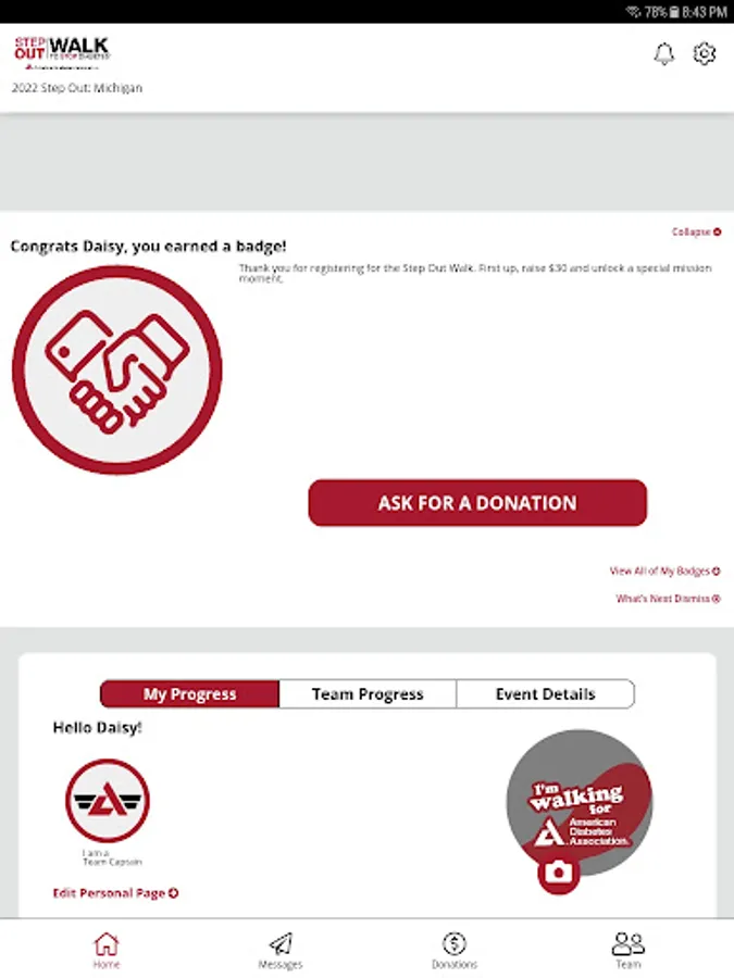Please note: This application is only available to current registrants of the Step Out event. If you haven't registered yet for an upcoming event, please go to www.diabetes.org/stepout to register for an event near you.