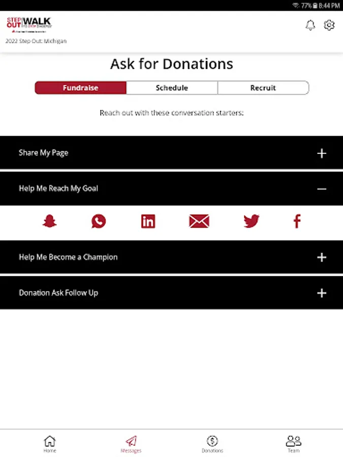 Do your fundraising on the go with your American Diabetes Association Step Out: Walk to Stop Diabetes mobile application. Update your page, send emails, check your progress, and connect to Google Fit to track your physical activity – all from the palm of your hand. The Step Out application is also a great tool to track your fundraising progress, and to keep current on all Step Out news!