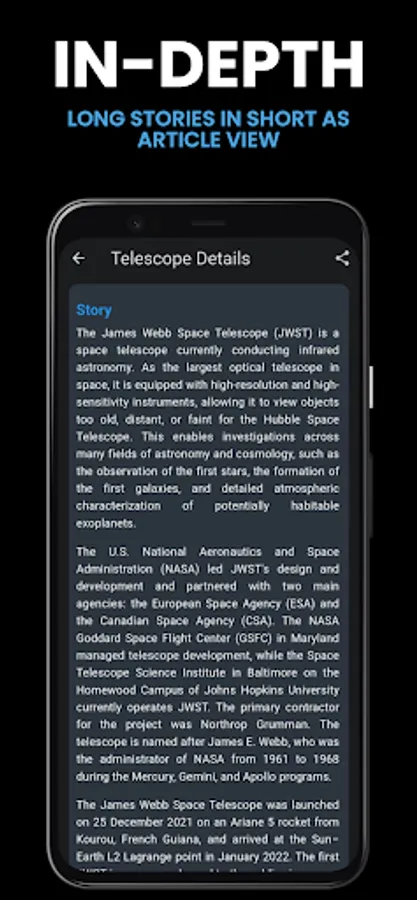 Our app includes a comprehensive list of all the rovers, orbiters, flybies and space telescopes, providing you with all the details about each mission, including launch dates, destinations and objectives. You can also enjoy short stories and highlights of every space mission, providing you with a deeper understanding of the scientific discoveries that are being made.