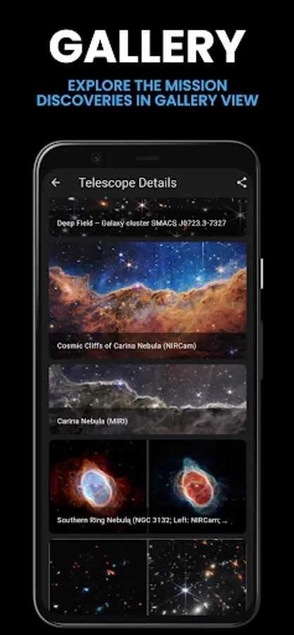 In addition to all of this, our app also includes an image gallery, allowing you to explore stunning images from space missions, giving you a glimpse into the beauty and wonder of our universe.