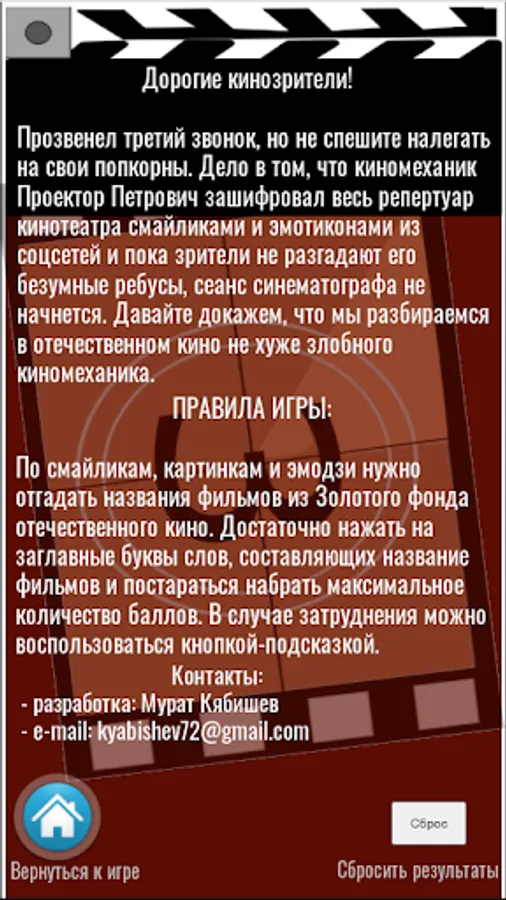 The third bell rang, but don't rush to grump your popcorns. The fact is that the projectionist Projector Petrovich encrypted the entire repertoire of the cinema with emoticons and emoticons from social networks, and until the audience unravels his crazy puzzles, the cinematography session will not begin. Let's prove that we understand Russian cinema just as well as an evil projectionist.