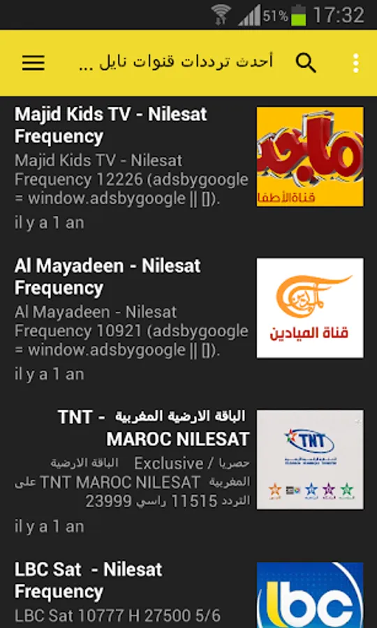 The Nile satellite channel frequency application displays all the new and exclusive frequencies in a renewed fashion
