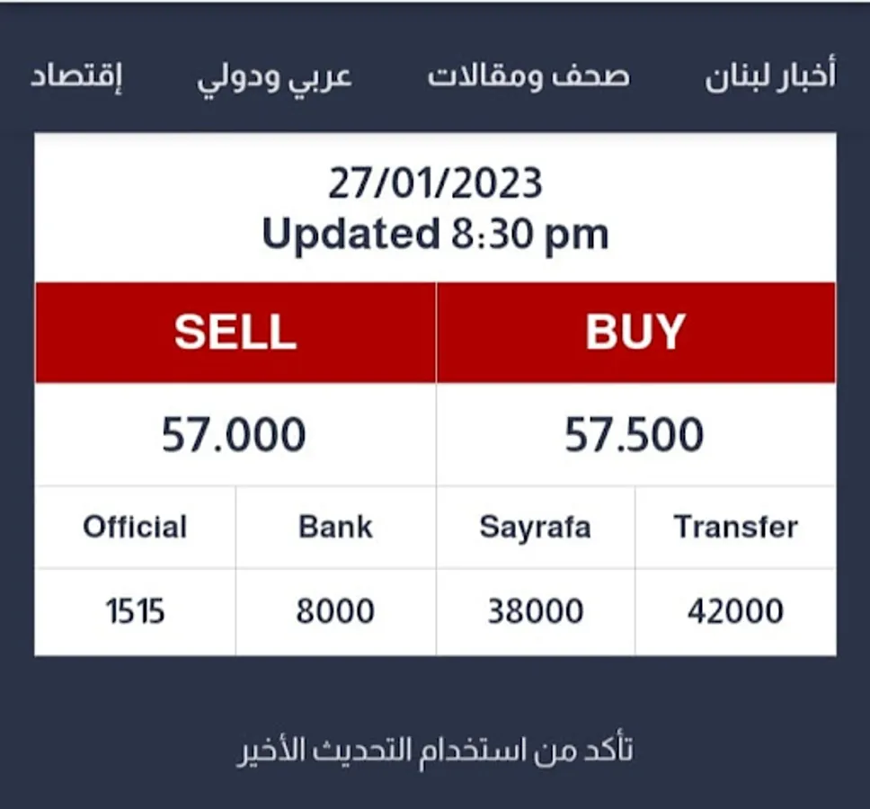 Led Dollar Today program to follow the exchange rate in Lebanon