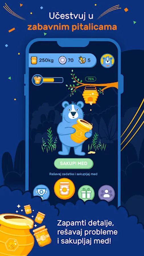 3. To nije sve, ukoliko te kviz ne zanima tokom celog dana imaš zanimljive igre memorije, za svaki tačan odgovor, naravno dobijaš med, koji menjaš za novčiće i njima licitiraš za vredne nagrade.
