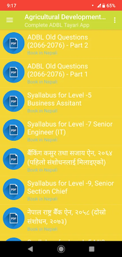 We designed very comfortable for user experience so that it can assist you to prepare ADBL Exam Tayari. All are free to access and we are updating app frequently so you can get all new material instantly into the apps.