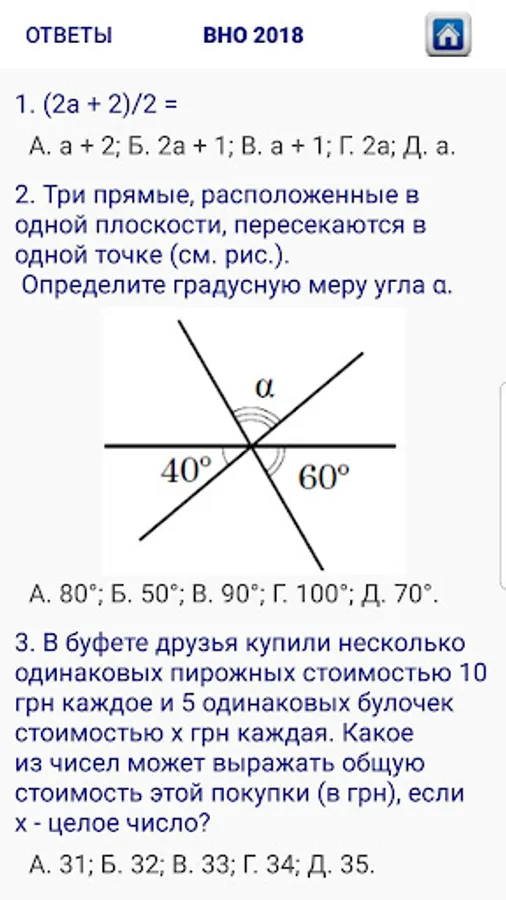 In contrast to the free application “Mathematics”, this included not only the tests of VNO in mathematics for all the years, but also the tasks of additional sessions with answers.