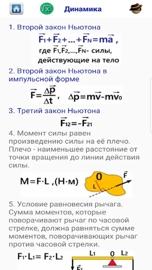 The "simulator" enables you to quickly learn basic formulas of physics.