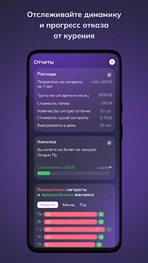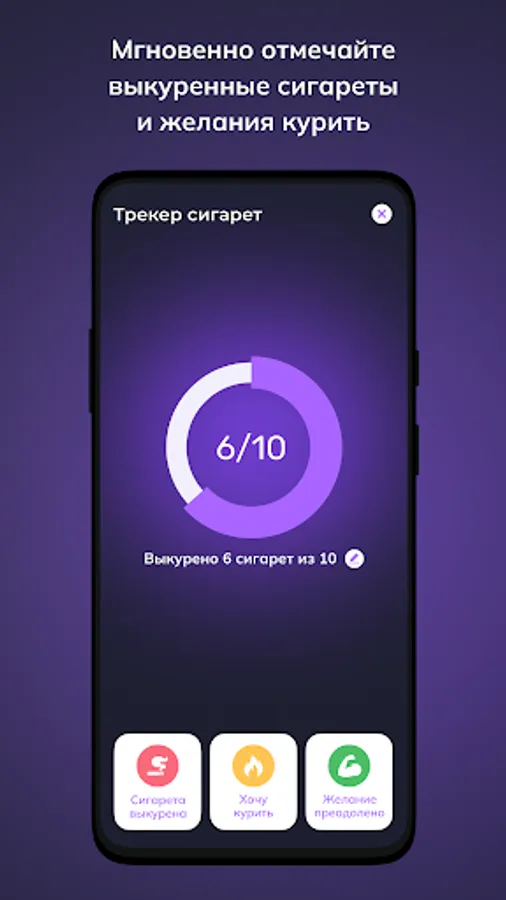 — Creation and customization of your avatar, which lives the entire path of quitting smoking with you