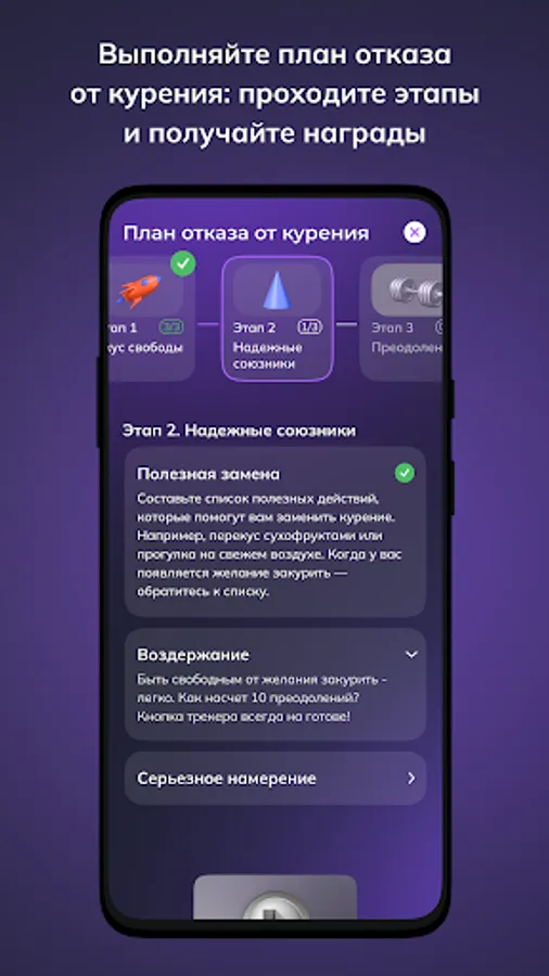 - Step-by-step smoking cessation plan: complete tasks and get rewards