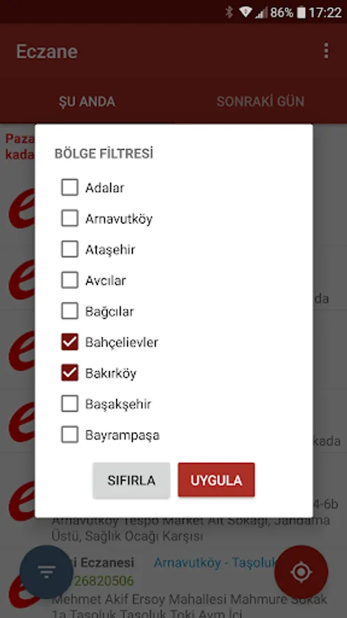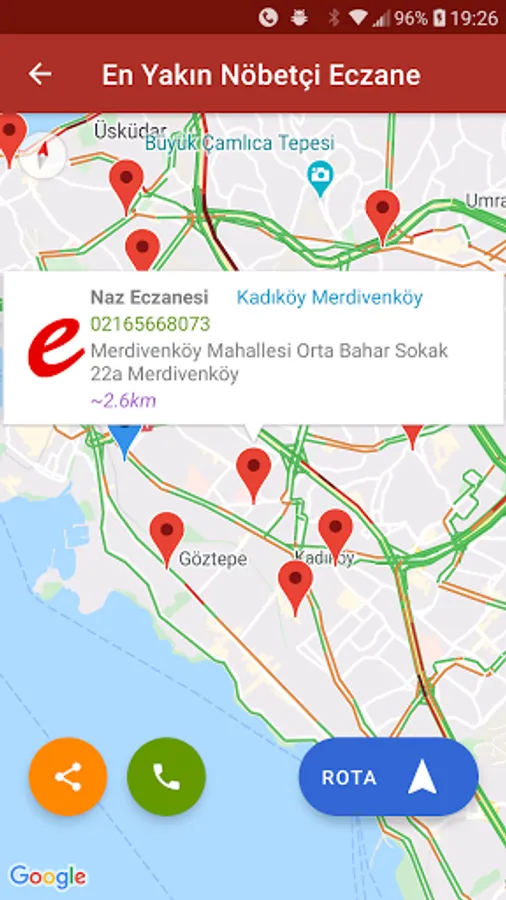 In more than 40 cities including Istanbul, Ankara, Izmir, Bursa, Antalya, you can automatically find the pharmacies on duty nearest to your location on the map.