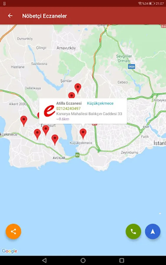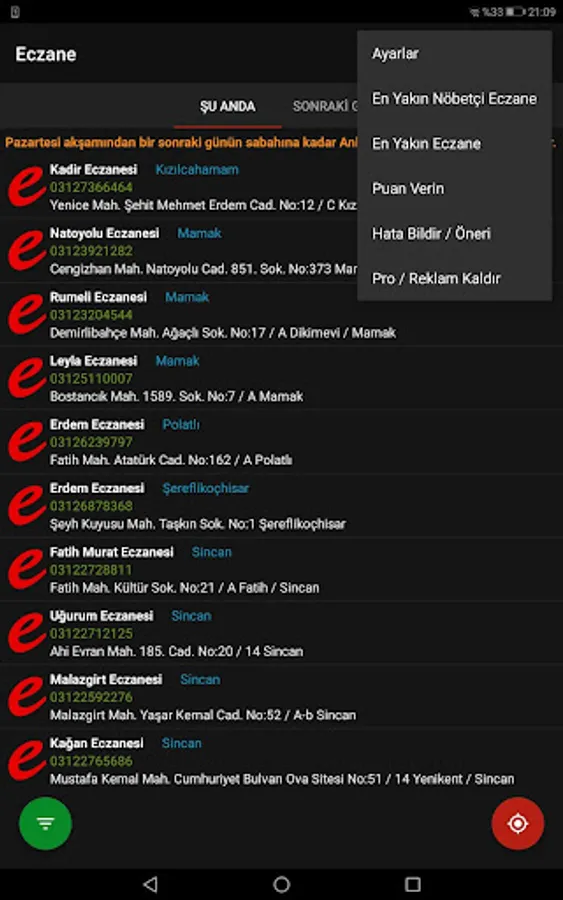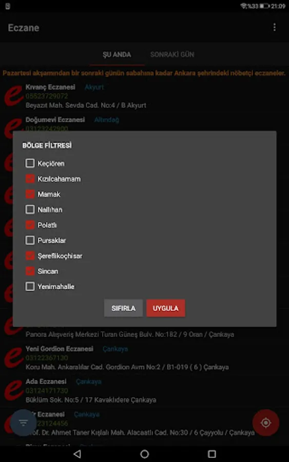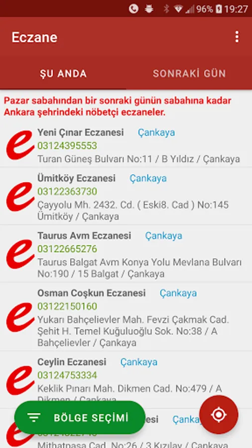 pharmacies on duty in the 81 provinces in Turkey and Northern Cyprus address, phone, and other information can be found on the map.