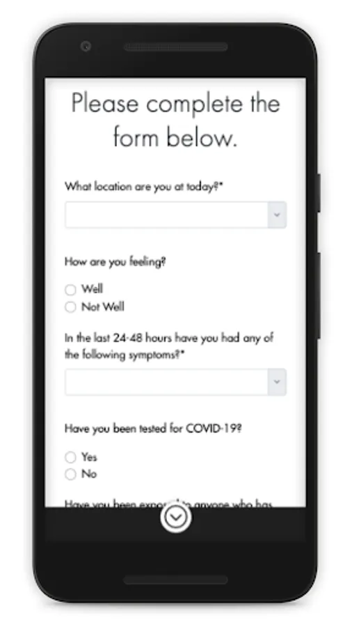 The JNF Employee App allows employees to complete a list of survey questions every morning to determine if they are healthy before returning to the office.