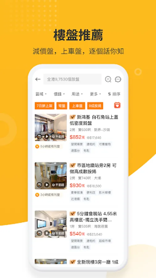 1. New real estate listings: Check out the latest real estate listings in the 18 districts of Hong Kong, the latest listings are the priority, and you can check as many as you want!