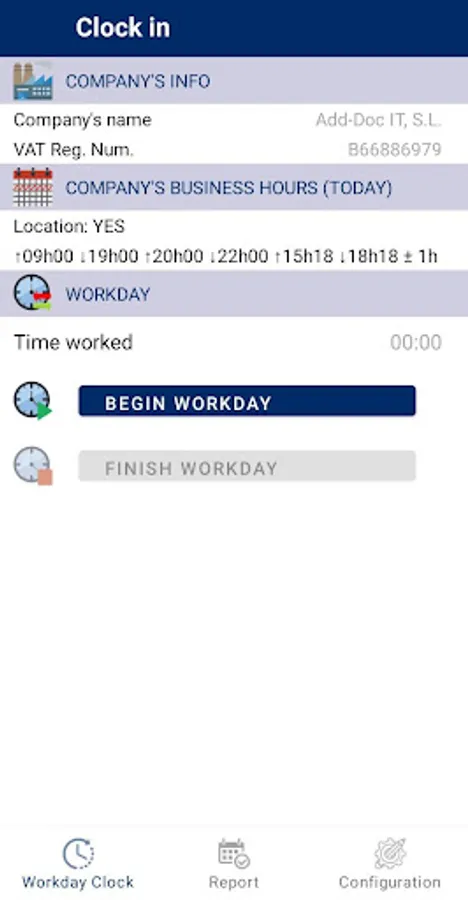 If the company requires it, the app will automatically save the user’s location at the beginning and the end of each workday.
