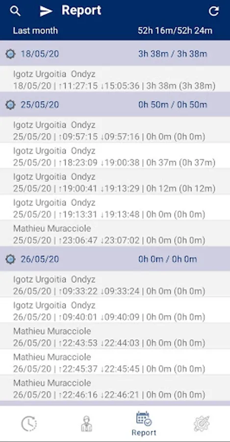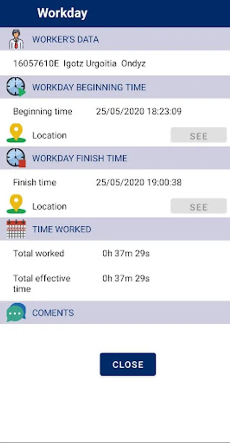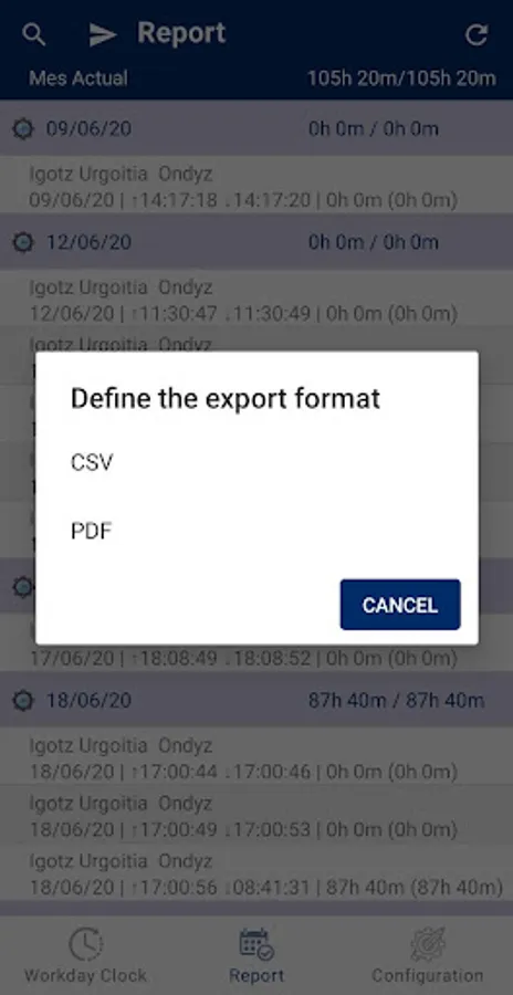 Finally, the worker will be able to access all his/her workdays and, if needed, export their data to CSV and/or PDF.