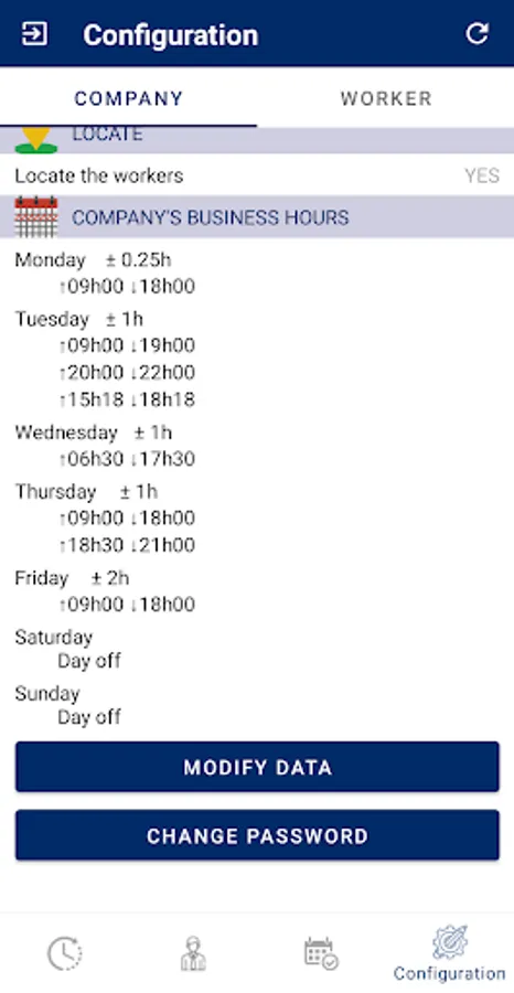- Request or not the location of the workers at the beginning and the end of each workday;