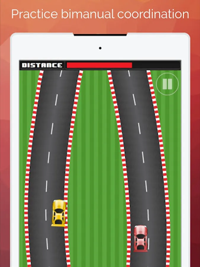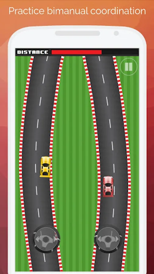 Train your bimanual coordination by playing this old school test drive game. Control both cars at the same time through the 2 on-screen steering wheels.