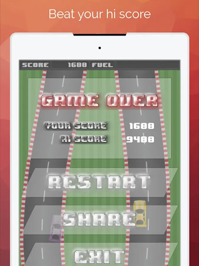 Avoid collisions on a practice game for getting high evaluations, and for keeping fuel on arcade mode.