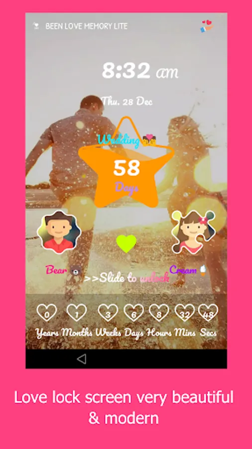 ★ Been Love Memory Lite 2020 Love Lock Screen very beautiful with Been Love Memory Lite Clock count each minute, second real time.