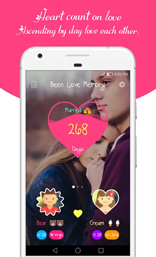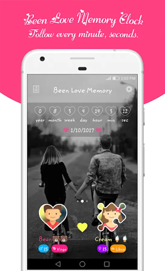 ❥ Been Love Memory help you: see how many days you have been together?Manage and remember important anniversaries for you and your partner! Dating couples love days!